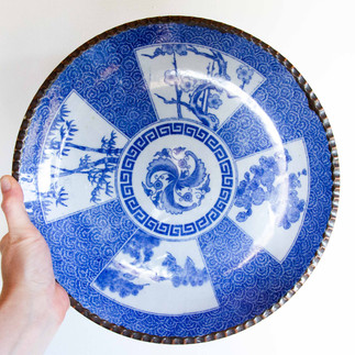 The design of the plates moved from being handprinted to utilizing the technique of inban - the print transferring of designs onto pottery. There are many common traditional patterns featured on the plates.